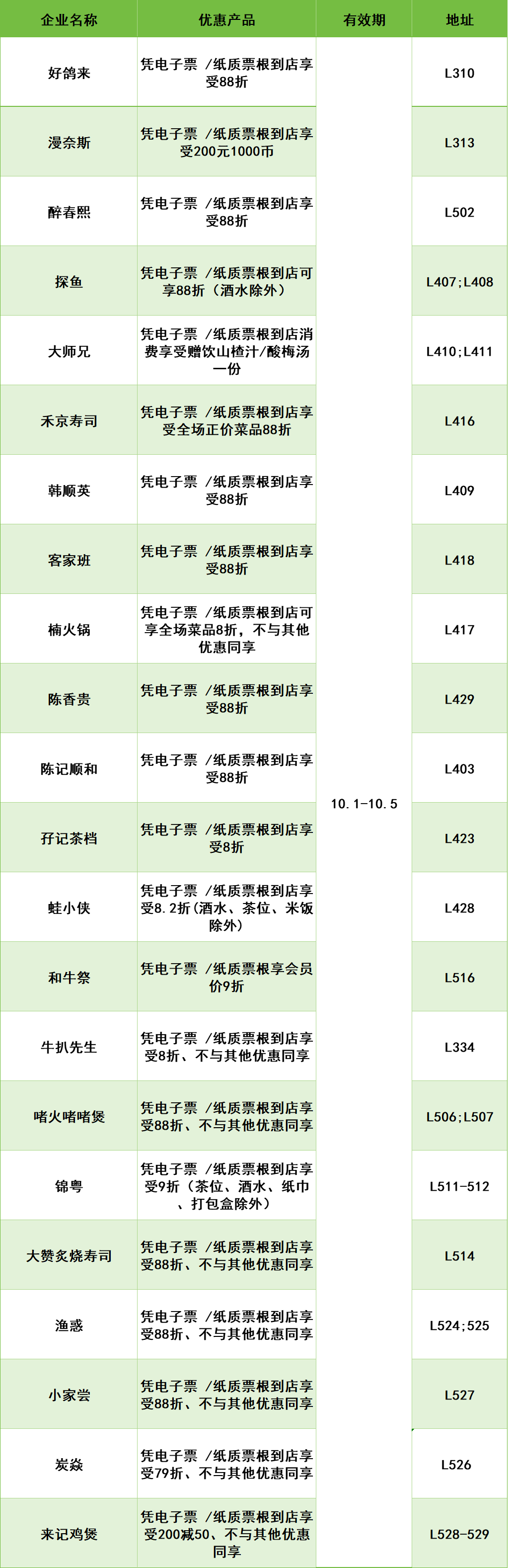 美食福利:跨品类餐饮让利,最长优惠持续至年底